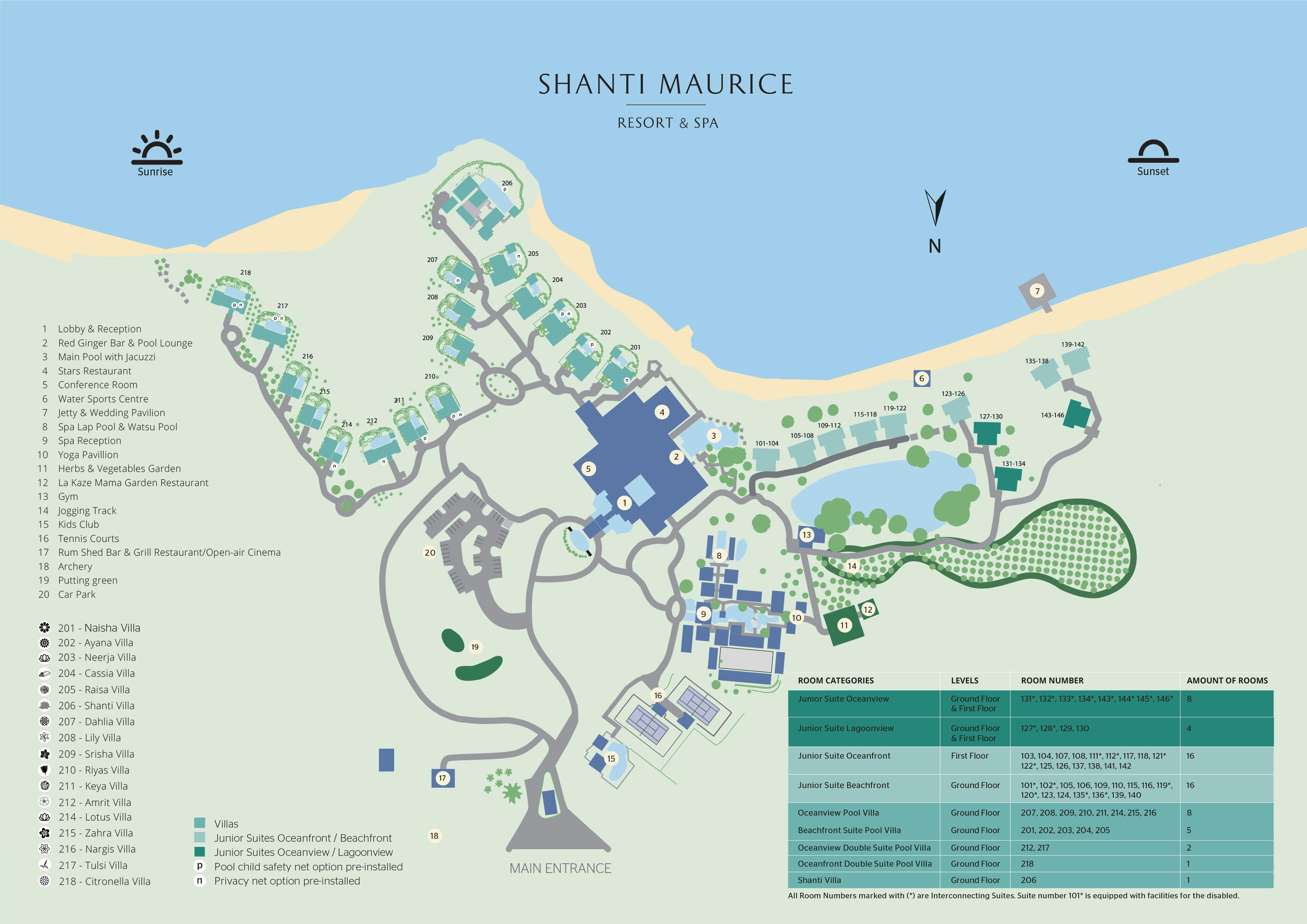 Browse on the white circles on the resort map and click to view your Suite | Villa